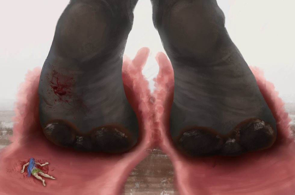 Mathew felt the entire weight of the man on his body. Instantly he collapsed, splattering down into the fabric of Ignis’ slipper. As his paw lifted a little, he saw the light grace his eyes once more, before another painful crunch. Much like his experience on the treadmill though, he was trapped, his soul tied to the flattened pelt beneath Ignis’ paw as he stamped his foot down a few more times to get rid of the fold. The dampness was masked by his own sweat from wearing his shoes, and with Mathew flat, he thought nothing of it.